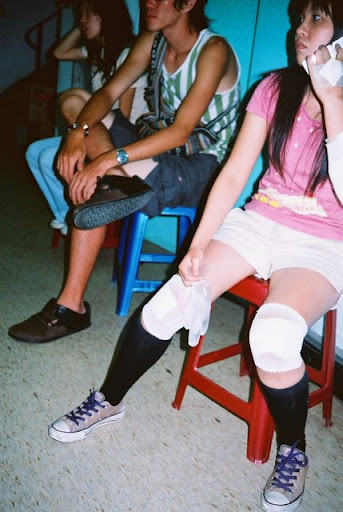 看的出來很焦慮。楊宜真跟吳冠瑩被送往澳底的保健站,我們騎車到那裏探望她們,那是一間很別緻的小診所,有日據時代的味道,裡面的林中一醫生,被我們虧說長的像趙建銘,結果他自爆其實他是趙建銘的學長,以前還住隔壁寢的。同一所學校出來怎麼會差這麼多,有像趙建銘那種臭人,也有像林醫師這種願意犧牲到偏遠的小鄉下服務的醫師,我感到台灣的醫界還是很有希望的,絕對不會別被偶爾出現的敗類給打敗的。