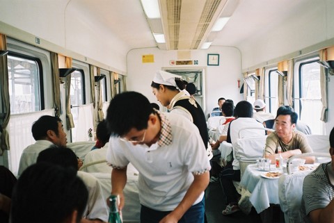 這種長途火車當然也有加掛餐車,因為在台灣很難看到,所以去探了一下,位子一直是滿的,都沒機會坐一下,楊姐也說了菜色都是差不多的,也就沒在這裡用餐了。