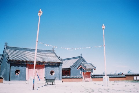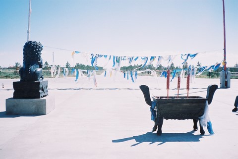 在酒池肉林的辣妹之夜隔天,下一個拜訪地點是喇嘛教的甘珠爾廟,遽說是蒙古地區數一數二的大廟,每年度的慶典,四周的草原都會被大批的信徒包圍,是草原上的盛事,我想大概就類似台灣的大甲媽那樣吧,但我們去的那天整間廟冷冷清清,除了喇嘛還有工作人員外一個訪客也沒有,這座廟又是蓋在草原的中央,四周都是很遙遠的地平線,完全沒有台廟的那種攤販,濃煙,喧鬧,這裡讓人好放鬆,好平和。