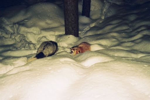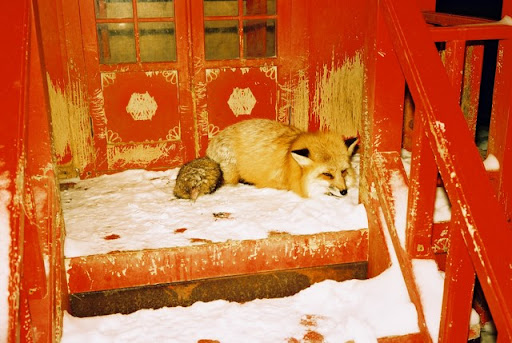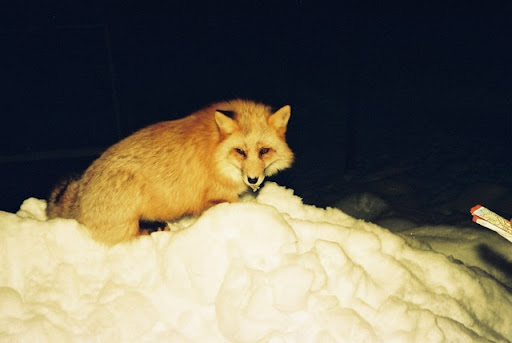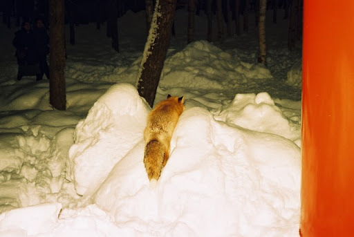 北見狐狸村是很像台灣交流道下休息站特產展售場的地方,但因為後方有座住著很多狐狸的山,休息站老闆就開始放飼料攏絡這些狐狸下山郊遊,於是觀光客就開始跑來跟老闆買肉棒肉片餵狐狸,可能的話也順便買些特產,老闆的那一天就會好開心呢。